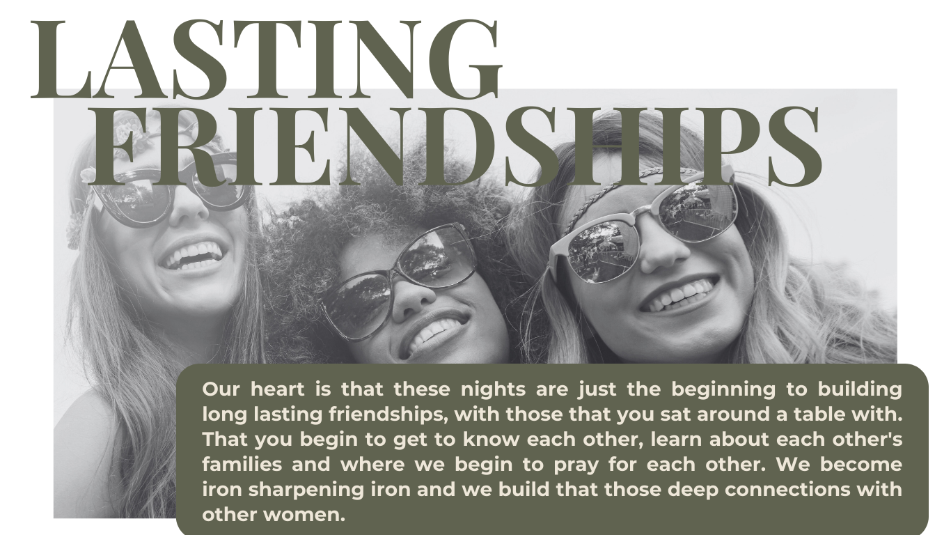 Come in your comfy clothes for a relaxed, welcoming Friday night dinner for women in every season of life. Expect intentional, open conversation, shared laughs (and maybe a few tears), and really good food. Come as you are, linger a little longer than planned, and leave feeling more connected, a little lighter, and glad you said yes to stepping out.